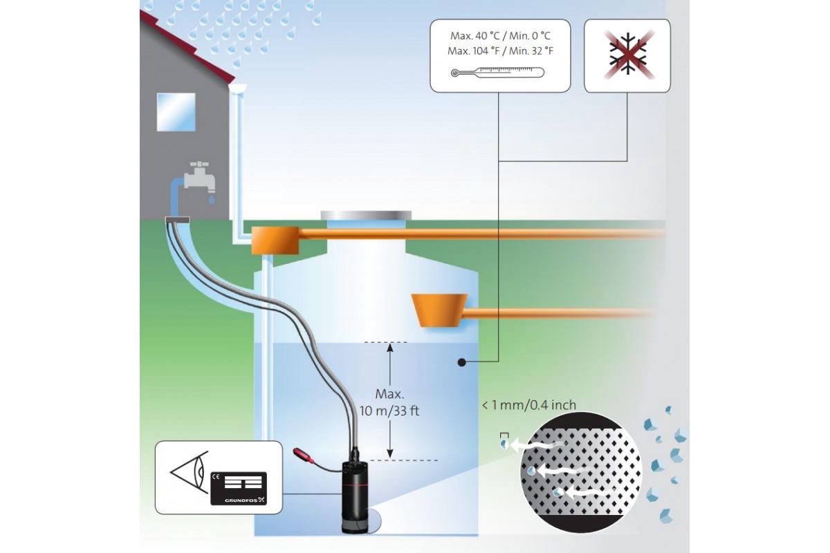 - Бесшумная работа - в погруженном состоянии насосная установка SBA работает бесшумно и потому является выгодной альтернативой непогружным насосам;