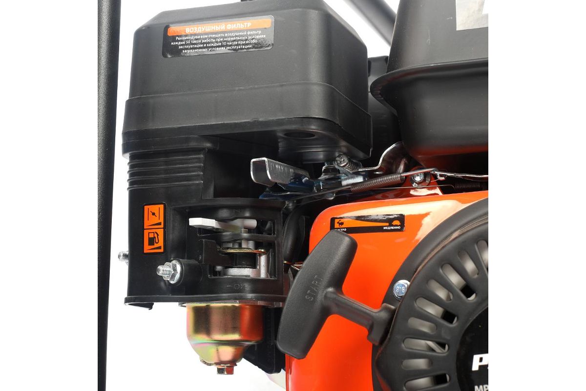 Двигатель 4-т, АИ-92, 163сс, 5.5 л.с., самовсасывающая, высоконапорная, максимальная производительность -20 м3/ч (330 л/м), максимальная глубина всасывания - 8 метров, максимальный напор - 60 метров, диаметр патрубков - 1,5'', объём топливного бака - 3,5 л, стартер - ручной, вес 23 кг.