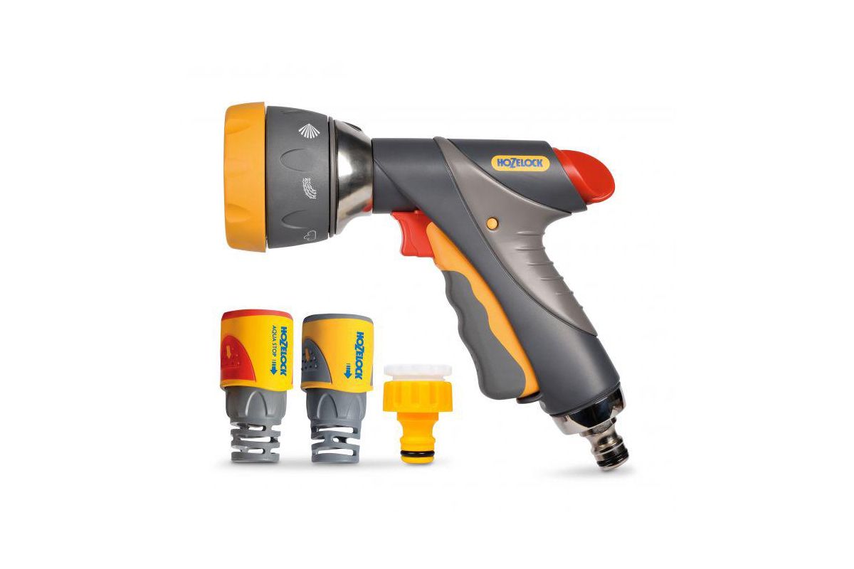 Набор для полива HoZelock 2371 мulti Spray Pro 12,5мм В комплекте: Пистолет-распылитель мutli Spray Pro 2694, Коннектор для концов шлангов Plus (12,5 мм и 15 мм) 2050, Коннектор aquastop Plus (12,5 мм и 15 мм)2055, Коннектор для крана вне помещений 1\2'' \ 3\4'' (12,5 мм и 19 мм)