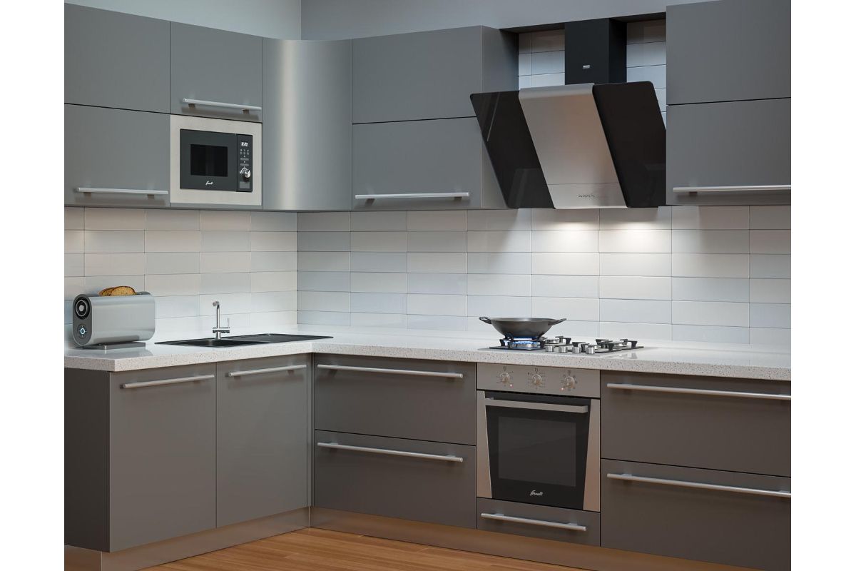 Вытяжка эффективно очищает пространство кухни от дыма, капель жира и копоти в процессе приготовления пищи. В устройстве представлено два варианта устранения загрязнений из воздуха: отвод и рециркуляция. При активации первого способа потоки попадают на улицу через вентиляционную шахту, во втором случае — освобождаются от частиц масла, нежелательных запахов за счет угольных фильтров и поступают обратно в помещение. В зависимости от интенсивности использования плиты доступно три режима скорости вентилятора.
