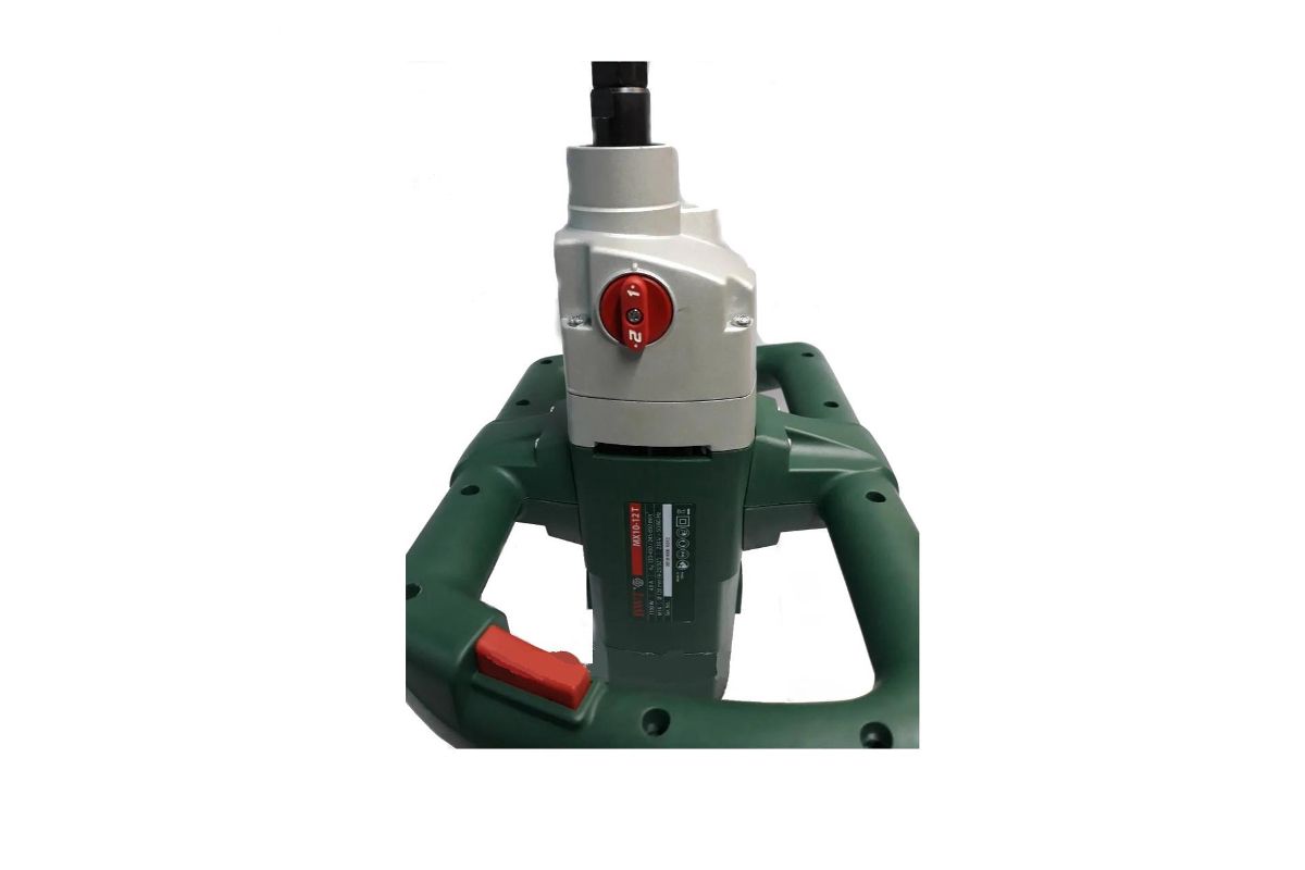 Миксер строительный. Имеет двускоростную конструкцию и плавную регулировку оборотов. Диапазон 130-450 об.мин на первой скорости и 245-850 об.мин на второй скорости делают его универсальным инструментом для перемешивания смесей различной консистенции и вязкости.
