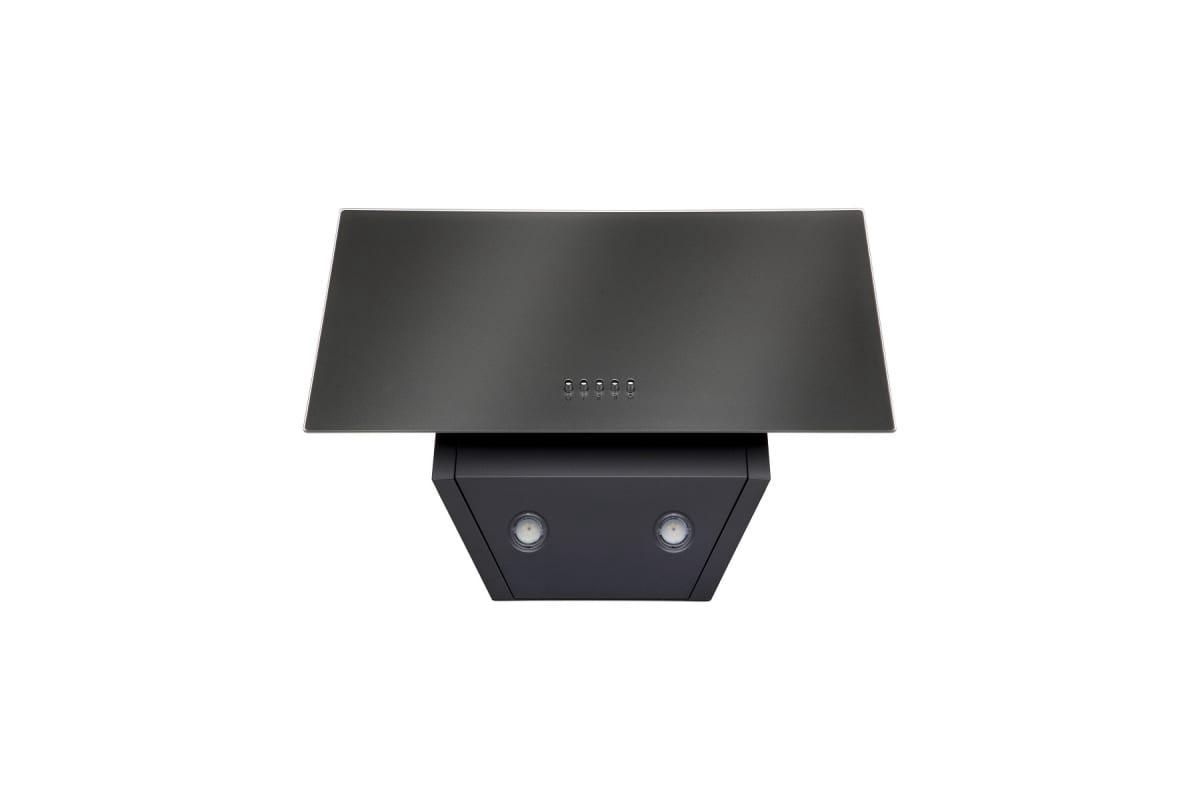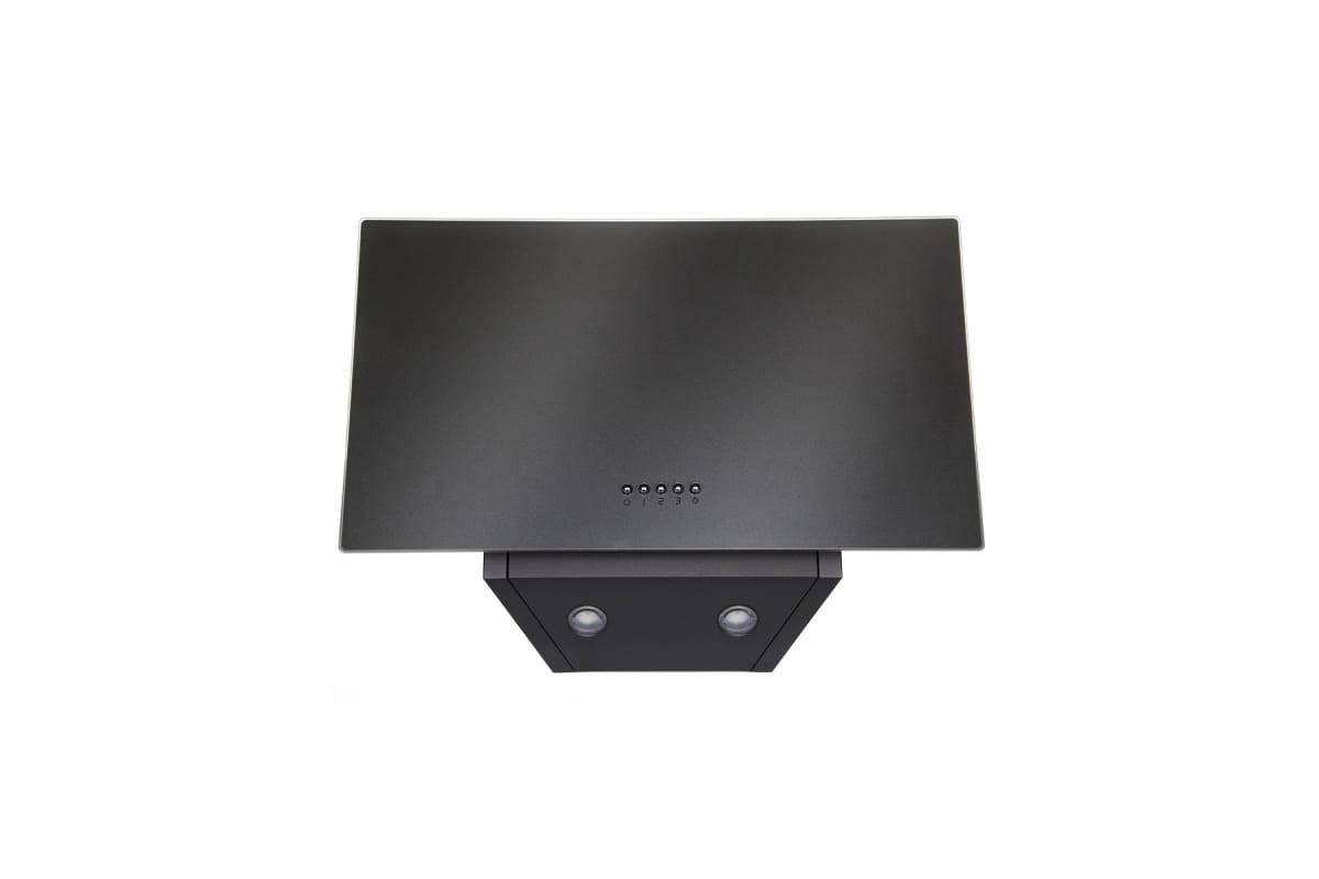 Наклонная кухонная вытяжка монтируется на стену над варочной панелью, как самостоятельный элемент интерьера или между двумя верхними кухонными шкафами.